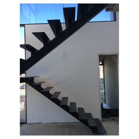 Prima Luxury Design External Galvanized Metal Staircase Steel Beam Straight Wooden Staircase Indoor Stairs